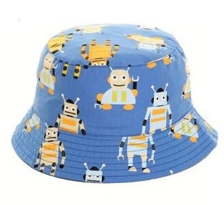 BUSH HOED MET BEDRUKKING, VOOR KINDERENKleuren: Robot print blauwMaten: 44cm, 46cm, 48cm, 50cmMateriaal: 100% katoen