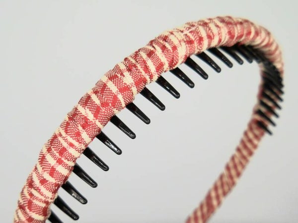 Diadeem stof met tandjes. rood geruit