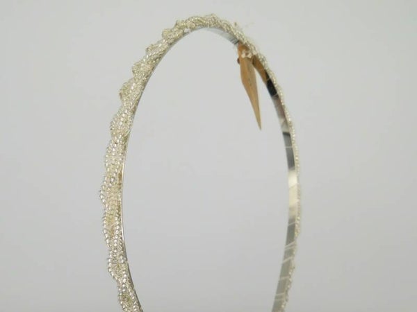 Diadeem met parel grijs. smal